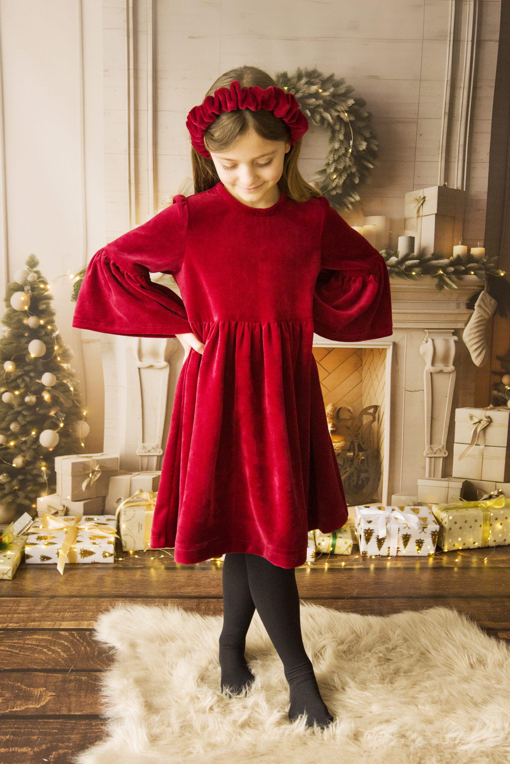 Sukienka Charlotte to wyjątkowa sukienka o klasycznym kroju z eleganckimi i nietuzinkowymi rękawami. Uszyta z bawełnianego weluru w kolorze bordowym.
