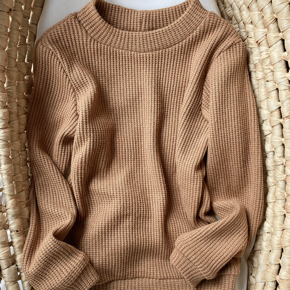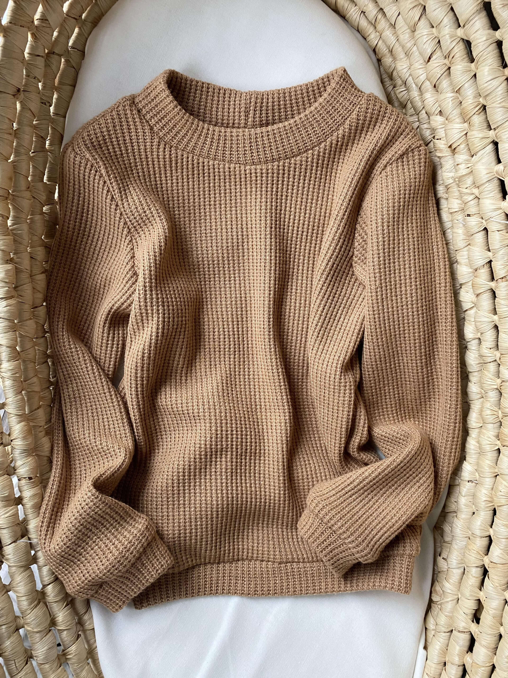 Przepiękny i elegancki sweterek o klasycznym kroju. Wykonany z mięciutkiej dzianiny swetrowej wiskozowej o wafelkowej strukturze. Jest niezwykle przyjemny w dotyku, co sprawia, że nie będzie „gryzł” delikatnej skóry dziecka. Sweterek występuje w dwóch odcieniach karmel oraz beż.