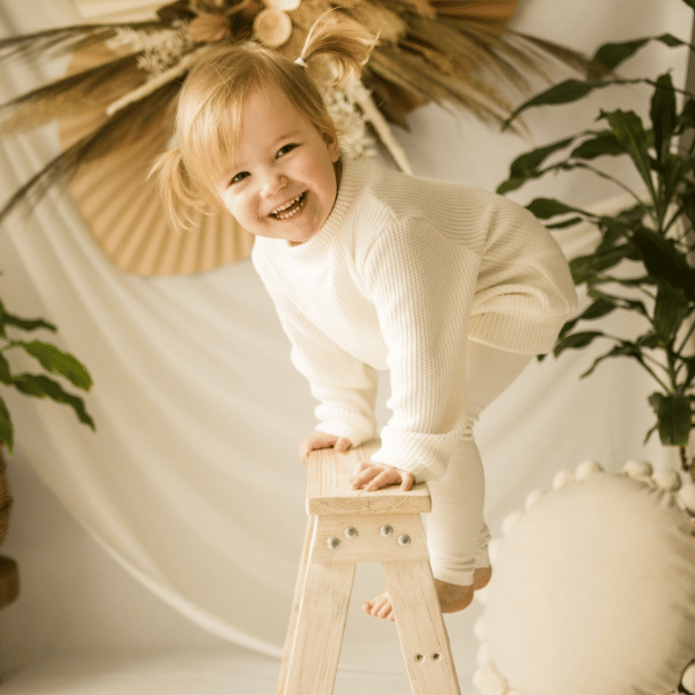 Przepiękny i elegancki sweterek o klasycznym kroju. Wykonany z mięciutkiej dzianiny swetrowej wiskozowej o wafelkowej strukturze. Jest niezwykle przyjemny w dotyku, co sprawia, że nie będzie „gryzł” delikatnej skóry dziecka. Sweterek występuje w dwóch odcieniach karmel, beż oraz biel.